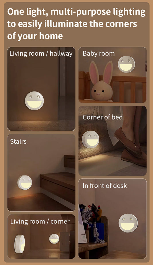 Cove Comfort Stick-On Smile Night Light - LED Motion Sensing, Battery Powered, Easy Magnetic Installation
